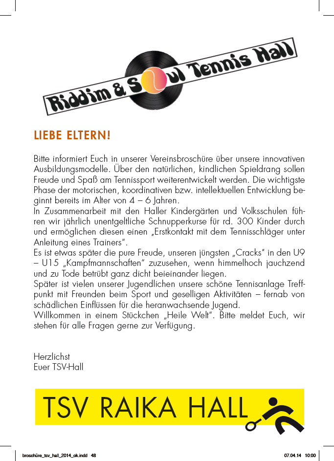 Anregungen und BeschwerdenObmann/Gert Engelmann0699 19956251Anfrage PlätzeSommerRöck Helmut0664 2006015Winter AbosUnteregger Hannes0664 3817535hannes.unteregger@chello.atWinter EinzelstundenManu Rantner05223 56251Anfragen Küche/ BüffetManu Rantner0664 73337577Anfragen TrainingMag. Robert Engelmann0676 7257606Patrick Wanner0699 17115810Anfragen Mannschaften/SportHerren Mag. Joh. Zelle0650 5074000Damen Mag. Nikki Niedrist0650 5074110Jugend Mag. Rob. Engelmann0676 7257606Schaltung InserateWeichselbaumer Martinm.weichselb@aon.at0650 8245453Homepage/Beiträge anVielkind Heinzinfo@vielkind.at0676 3201577